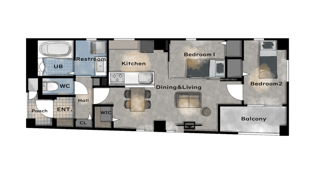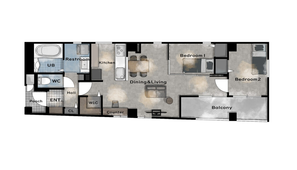 A-TYPE:2LDK(54.86㎡) 2-5階